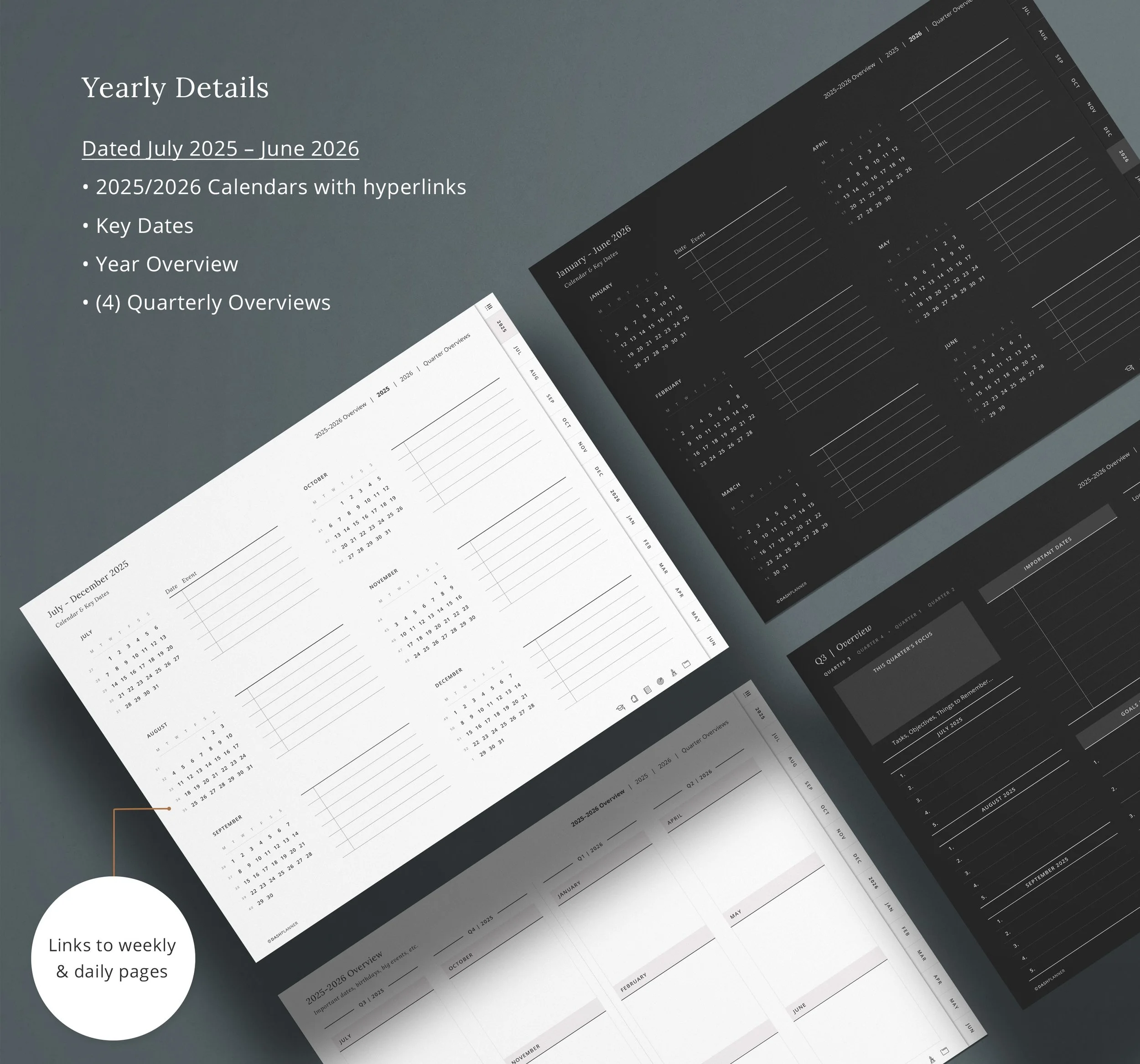 - (4) Portrait Planner PDFs (Monday & Sunday Start, light & dark mode)